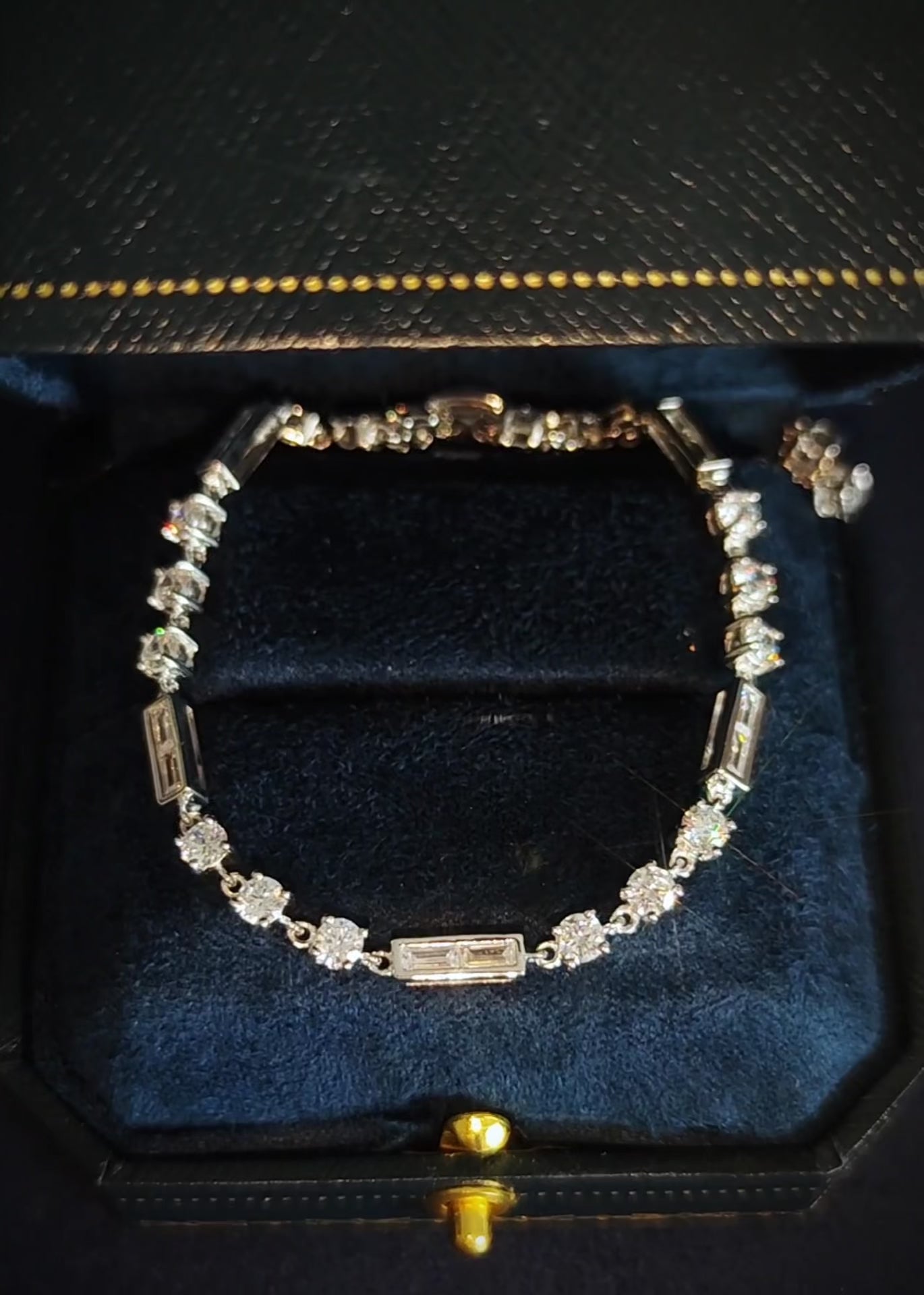 A refined tennis silhouette defined by continuous brilliance and effortless elegance. This bracelet features a seamless row of sparkling stones that wrap the wrist with fluid movement and timeless appeal. Designed to transition effortlessly from bridal moments to evening occasions, it delivers a polished finish that elevates both modern and classic styling.